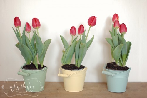 Esses baldinhos cumpriram muito bem o papel de vasos, ficaram bonitos e harmoniosos .